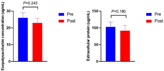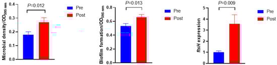 3.3. Microbial Density, Biofilm Formation, ftsH Gene Expression, and Extracellular Polymeric Substances Composition