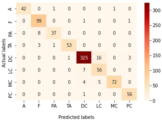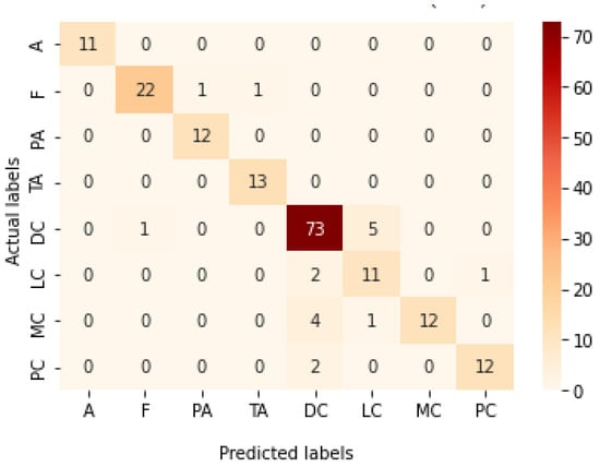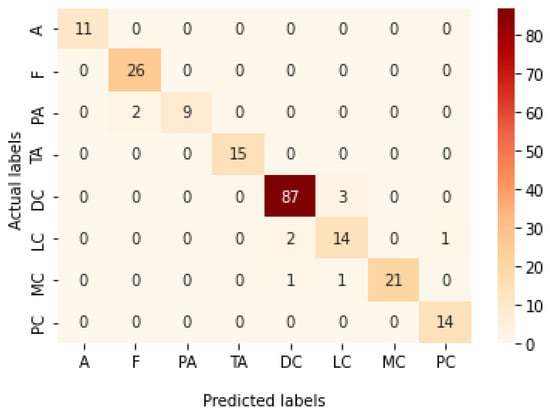 Confusion matrix of Xception model in 100× magnification-dependent multi-classification.