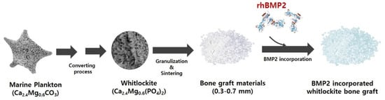 Schematic of the BMP2-incorporating marine-plankton-derived WH bone granules.
