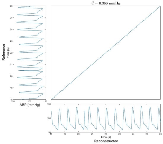 - Create a N×N matrix. An element in the ith row and the jth column in the matrix is the Euclidean distance between the ith sample point in the reconstruction ABP and jth sample point in the reference ABP, which is defined as di j.