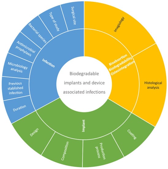 Studies were included in this review if they met the following criteria: (1) in vivo or human or simultaneously both in vitro and in vivo studies, (2) full biodegradable implants/devices or scaffolds in bone fixation and its impact on infection prevention, (3) in vivo studies comparing biodegradable versus non-biodegradable implants regarding bone infection, (4) in vivo studies testing biodegradable implants and its antibacterial activity and (5) in vivo studies including microbiology analysis.