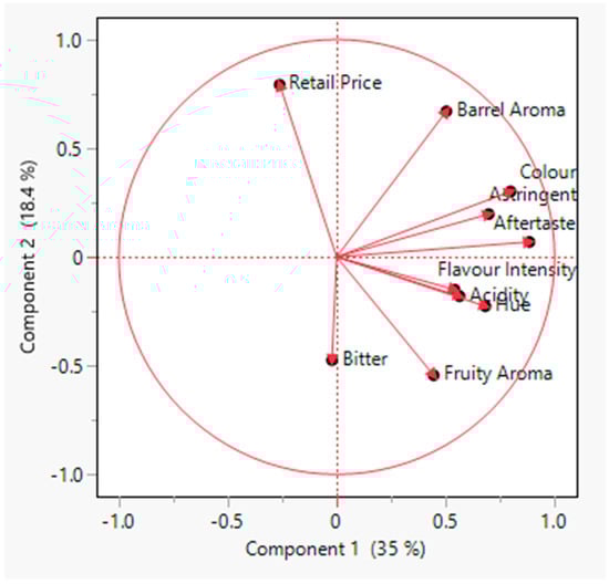 The significance of the organoleptic evaluation and sensory analysis of wine extends beyond the market; it also plays a crucial role in the wine’s production. The organoleptic characteristics of a wine can be influenced by several factors, including grape variety [], grape-growing region, harvest conditions, soil type, and winemaking practices [,]. Numerous research publications have illustrated the use of sensory science in comparing winemaking parameters. For example, researchers have conducted studies on the organoleptic properties of wines with varying proanthocyanidin contents [], as well as wines aged using oak chips [,] and during bottle aging []. Additionally, studies have successfully categorized wines based on their organoleptic characteristics related to specific growing regions [,]. Clearly, sensory analysis is useful for oenologists and winemakers, as winemaking practices [,] and cultivation regions significantly influence the organoleptic characteristics. Additionally, organoleptic analysis could become a useful tool during the final blending of wines to create the final product.