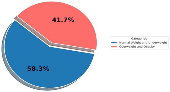 Figure 2 presents the distribution of students based on weight categories. The majority (58.3%) of students were persons with normal weight or who were underweight, while 41.7% were persons who were overweight or obese.
