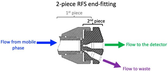 Recent developments and commercial introductions in column technology in HPLC have led to the design of column outlet fittings that segment the flow of the mobile phase and solute as it exits the column [25]. Specifically, the radial central flow portion of the mobile phase is isolated from the peripheral wall region. This process of flow segmentation has been termed ‘radial flow stream splitting’ (RFS) [26,27,28]. The RFS HPLC column provides the advantage of a higher separation efficiency since the stationary phase bed/packing structure in chromatography columns is heterogeneous in density. Generally, the more homogeneous portion of the bed is in the radial central region of the bed, with heterogeneity developing as the wall region is approached. This is the case whether the column is packed with particles or is formed from a monolithic structure. So, the separation of flow between the radial central section of the column and the wall region of the column yields a higher performance, and only the flow from the radial central region of the column is sent to the detection source. An added advantage of the RFS HPLC column is that, as a consequence of the dual outlet of flow, the operational pressure of the column is reduced; hence, higher speeds of analysis are possible, which can benefit routine high sample throughput laboratories.