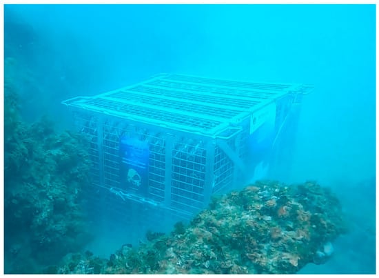 All bottles, whether stored in the cellar or in the underwater cage, were kept horizontally throughout the 12-month aging period. The bottles were stored in the underwater cage (107 × 107 × 98 cm) at a depth of 13 m below sea level (latitude 41°07′21.9′′, longitude 13°50′48.541′′) (Figure 1).