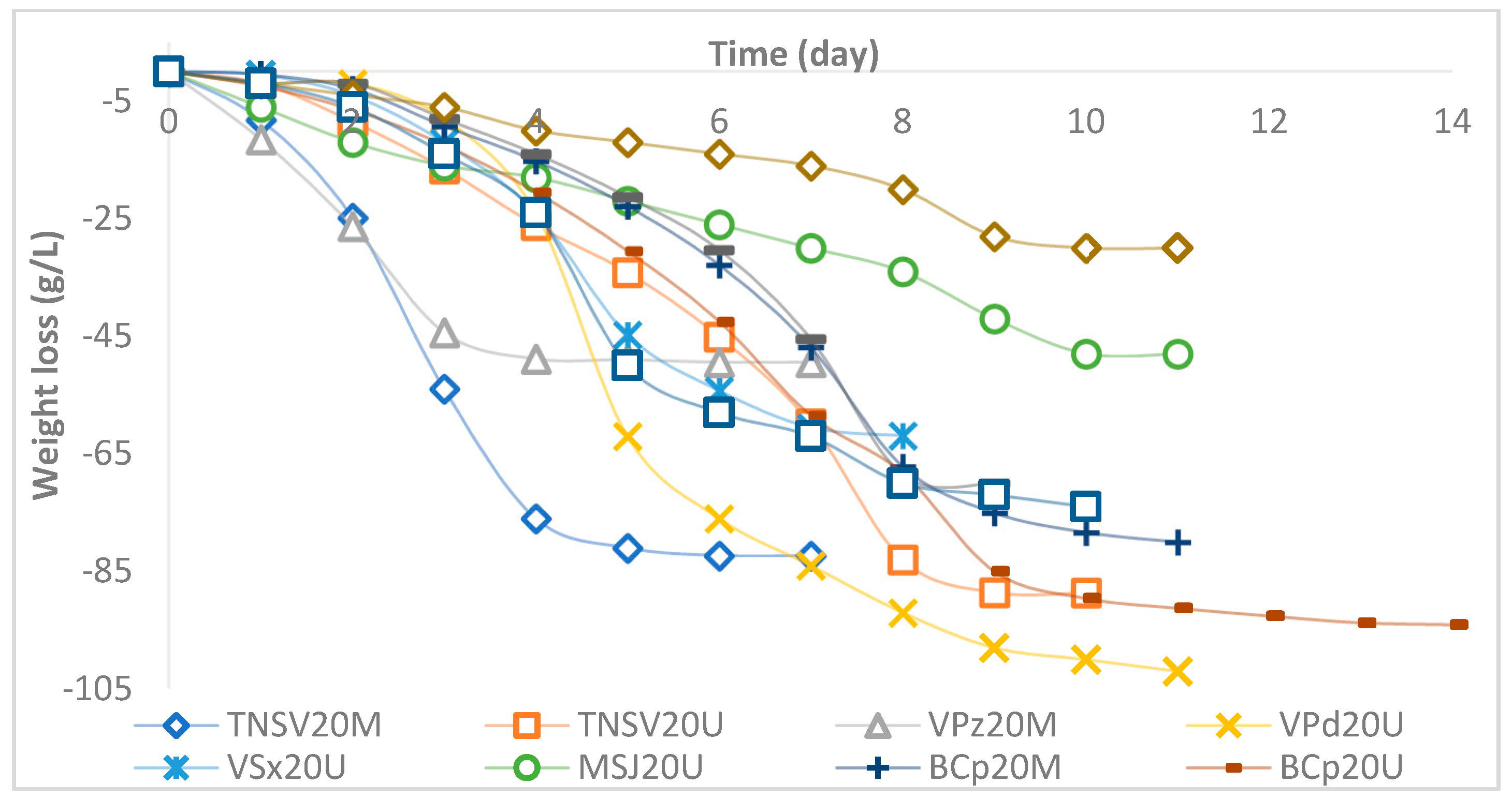 | # | Id. | SCS 1 (g/L) | SCF 2 (g/L) | Dilution | Col. No. 3 | CFU/mL 4 |