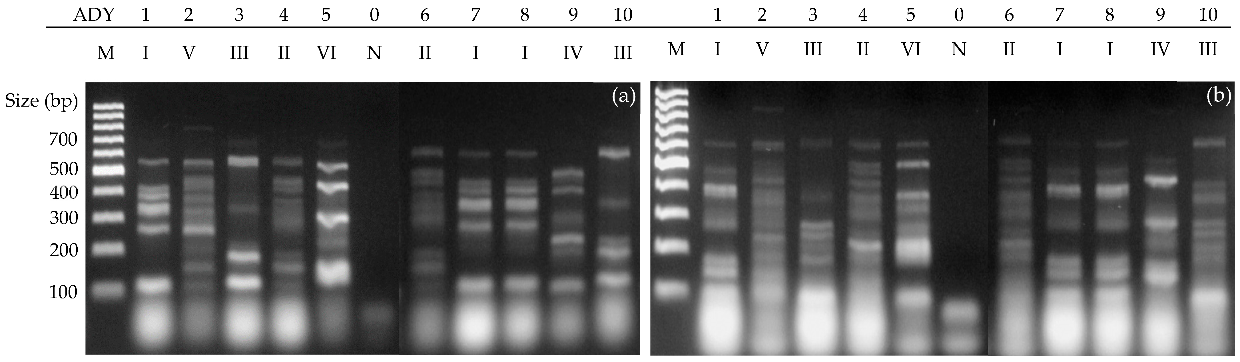 3.3. PCR-Interdelta Analysis of Endogenous Isolates