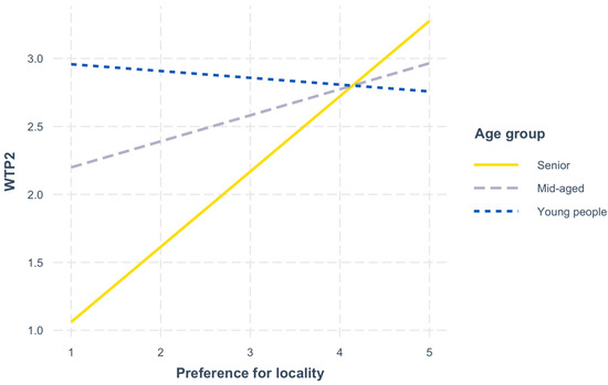 Interaction Plot–Preference for locality × WTP2. Note. WTP2 = WTPLabel2.