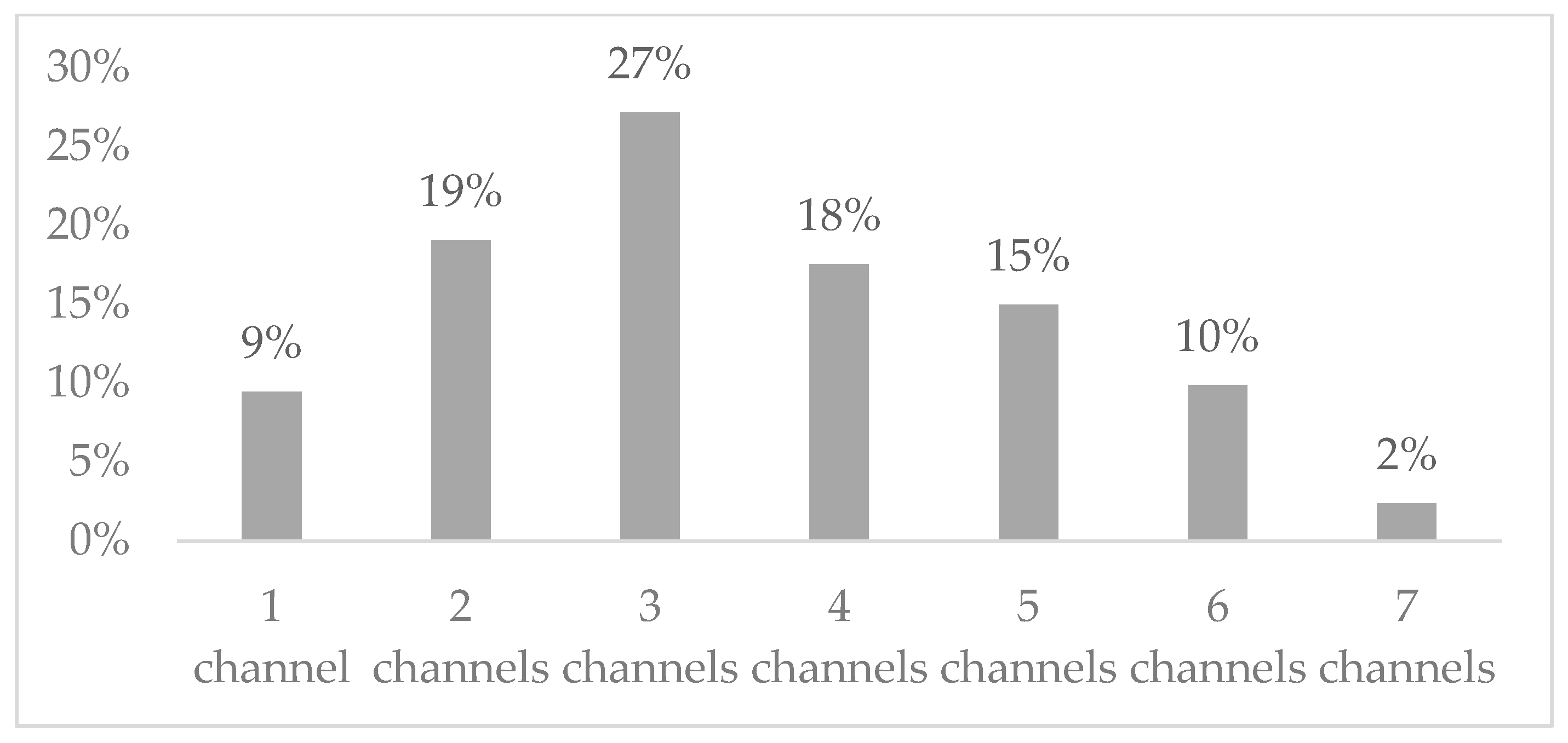 44], systematic and current data confirming or challenging these assumptions could not be identified. Moreover, an omnichannel perspective, with knowledge of the number and combinations of distribution channels, helps managerial decisions in considering resource allocations, competencies, and profit impacts. Resource dependency is of relevance in an industry that is characterized by the dominance of micro or small businesses, such as the examined German wine industry [