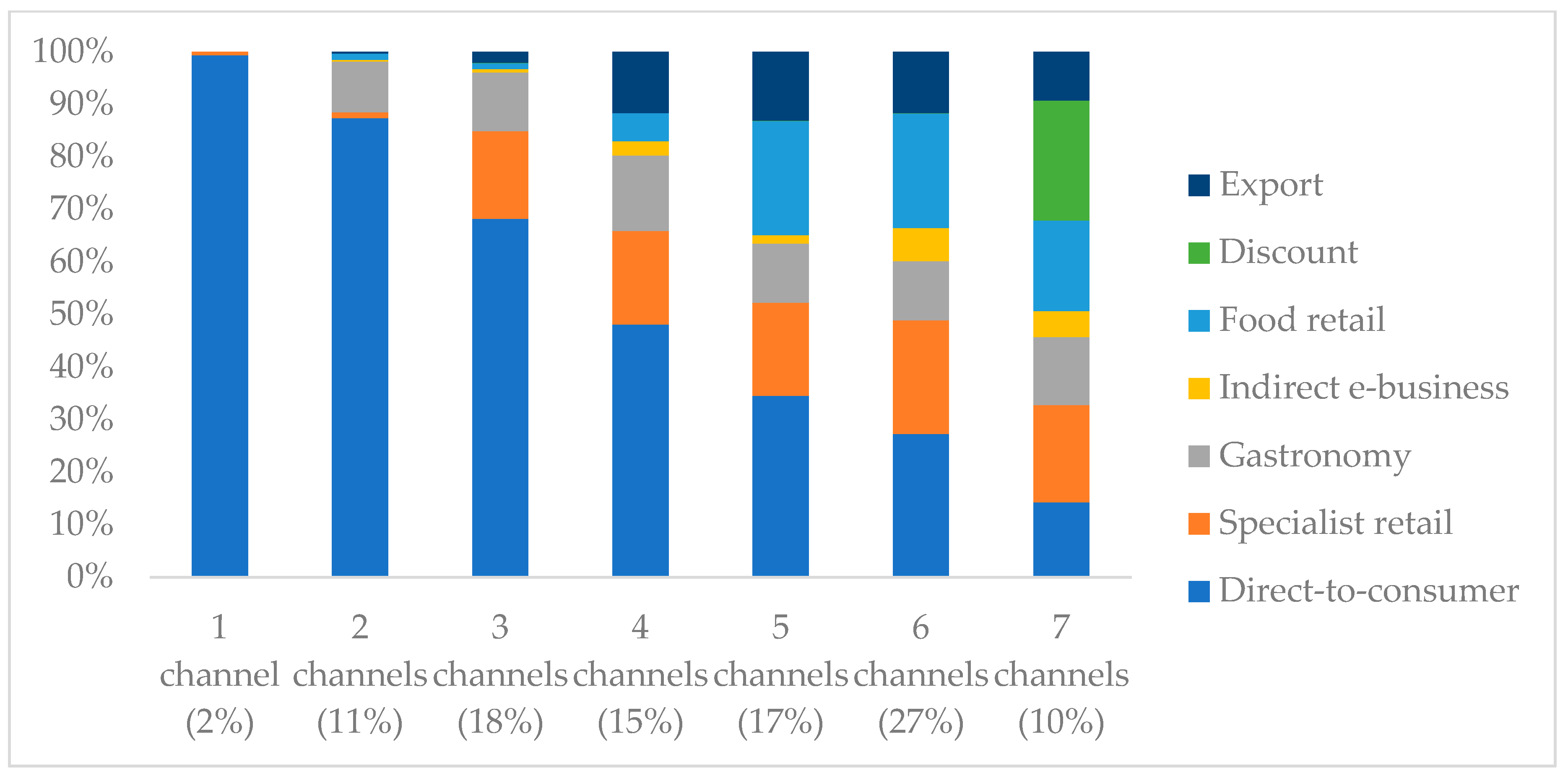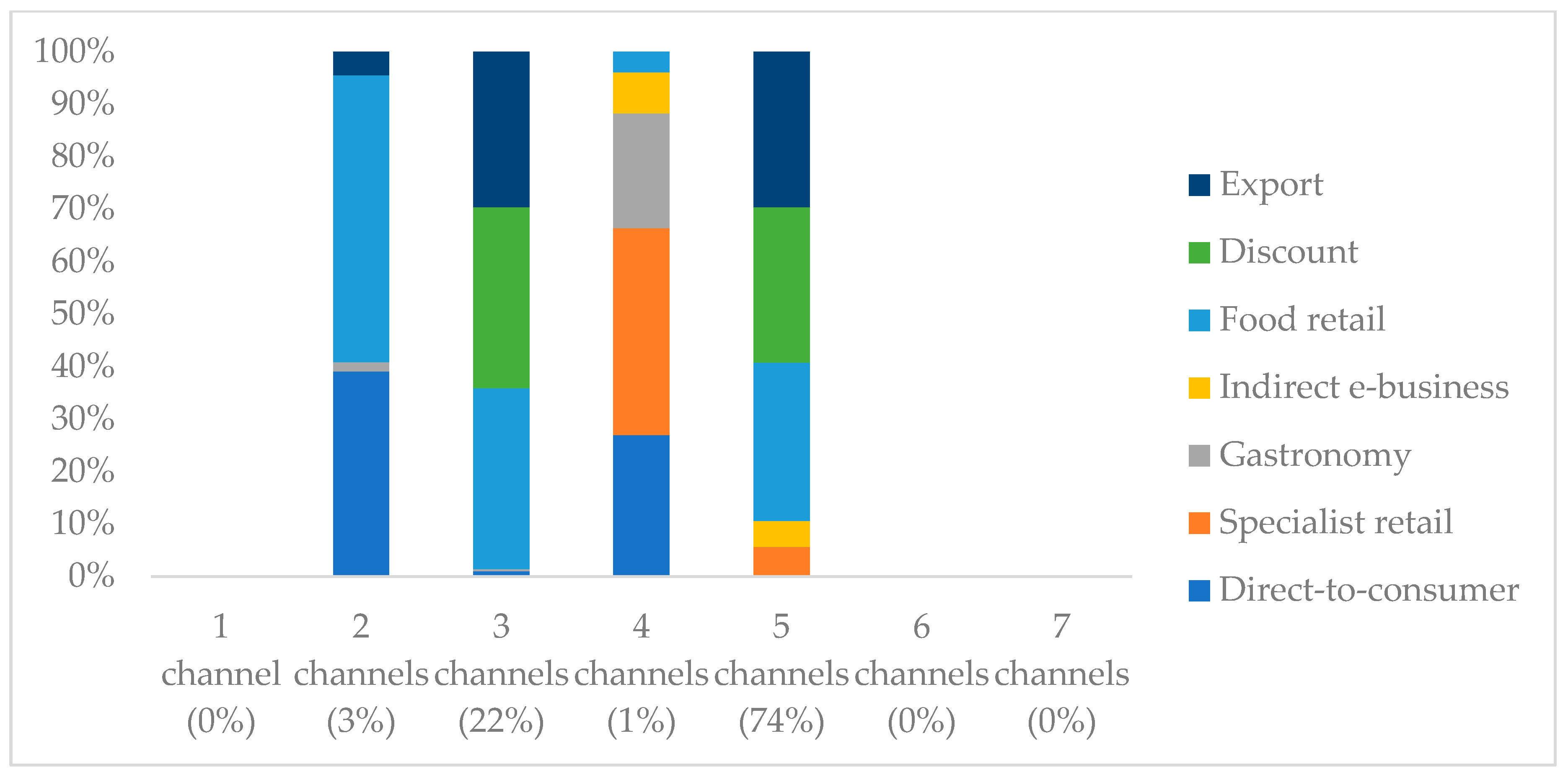 43]. The survey results provide quantifiable evidence that the shift towards indirect distribution via food retail, discount, and e-business retailers represents an evolutionary transformation rather than a caesural one, contrasting with common statements in the literature [
