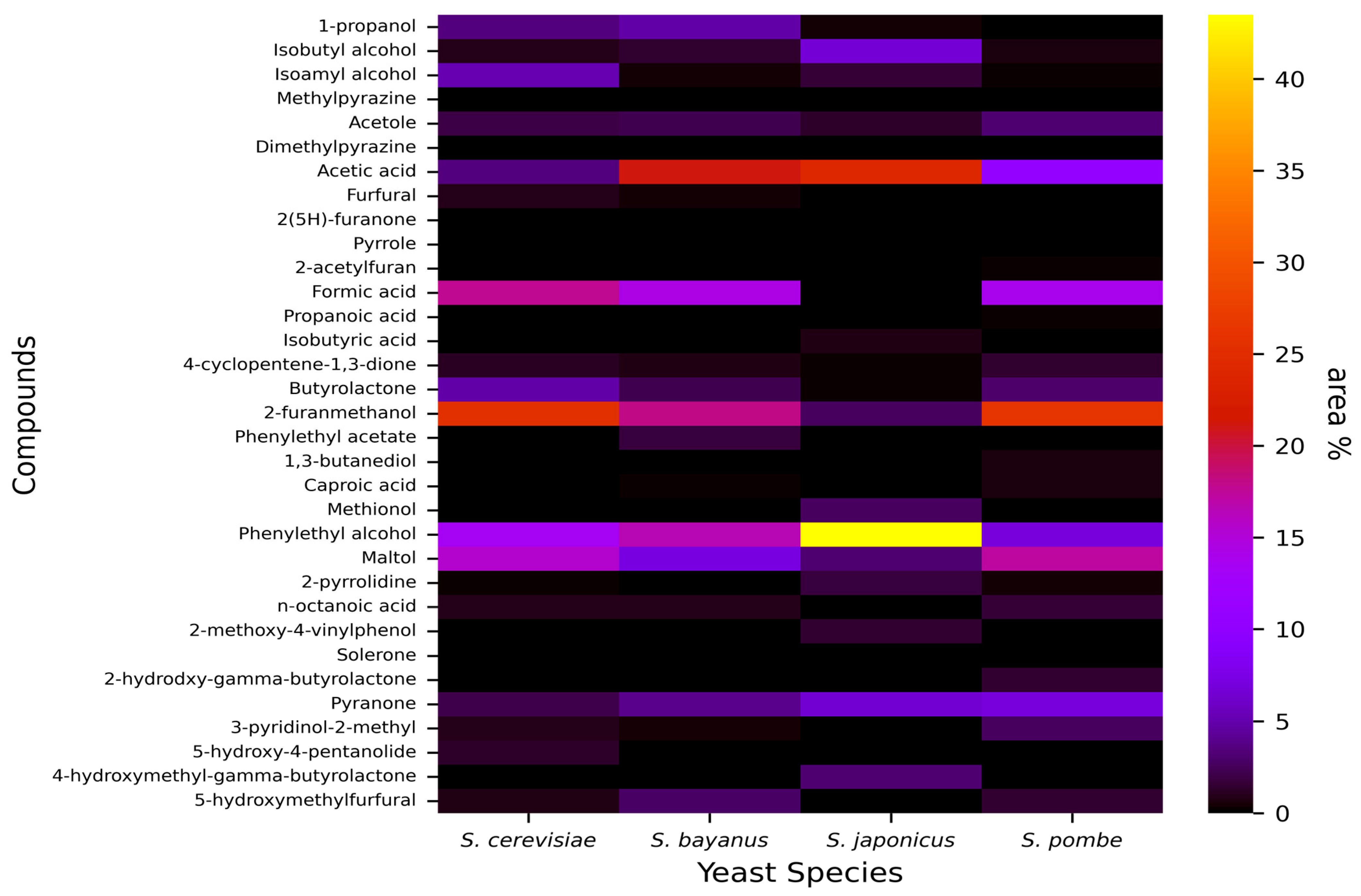 S. bayanus | 17.1 ± 0.3 c | 0.0606 ± 0.0041 b | 84.7 ± 0.9 a |