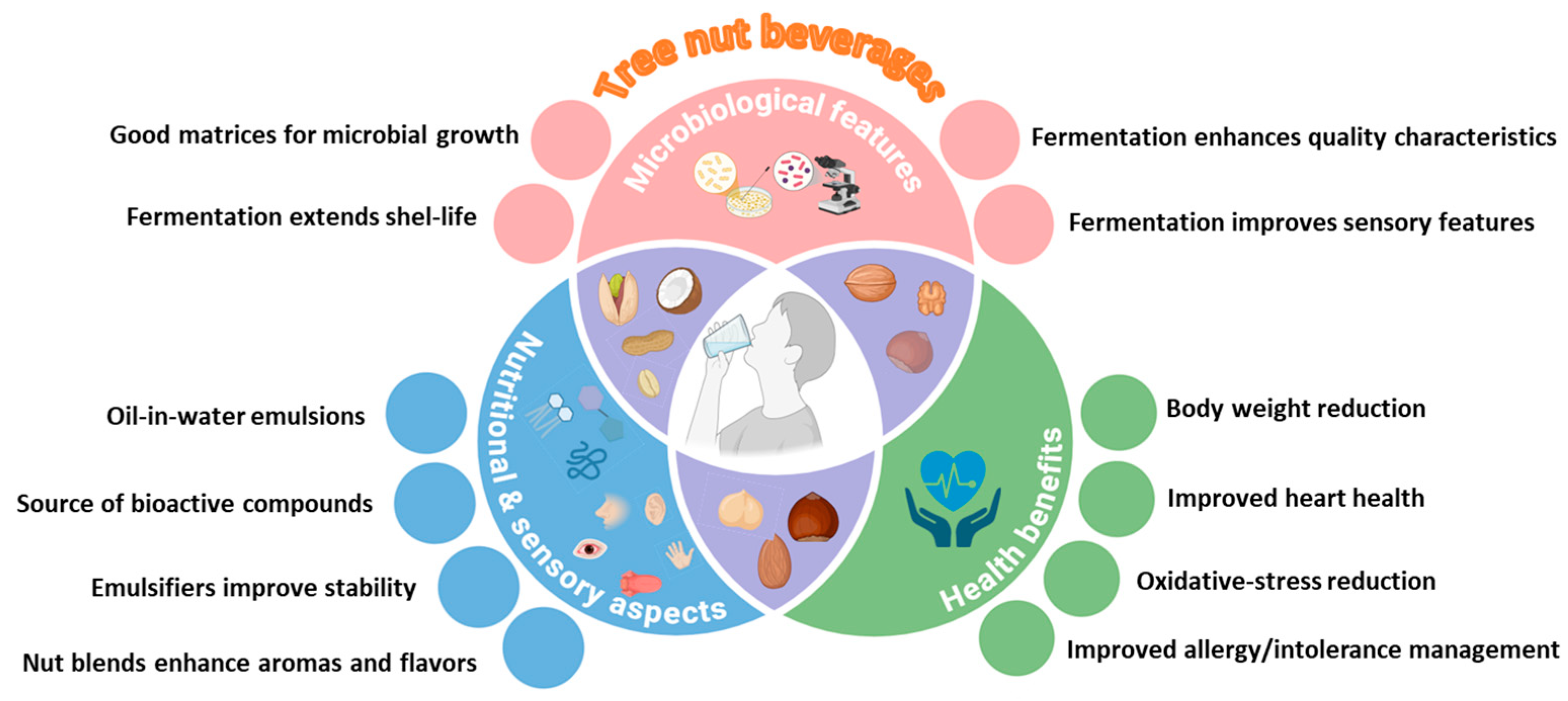 An Overview of the Microbiological, Nutritional, Sensory and Potential Health Aspects of Tree Nut-Based Beverages
