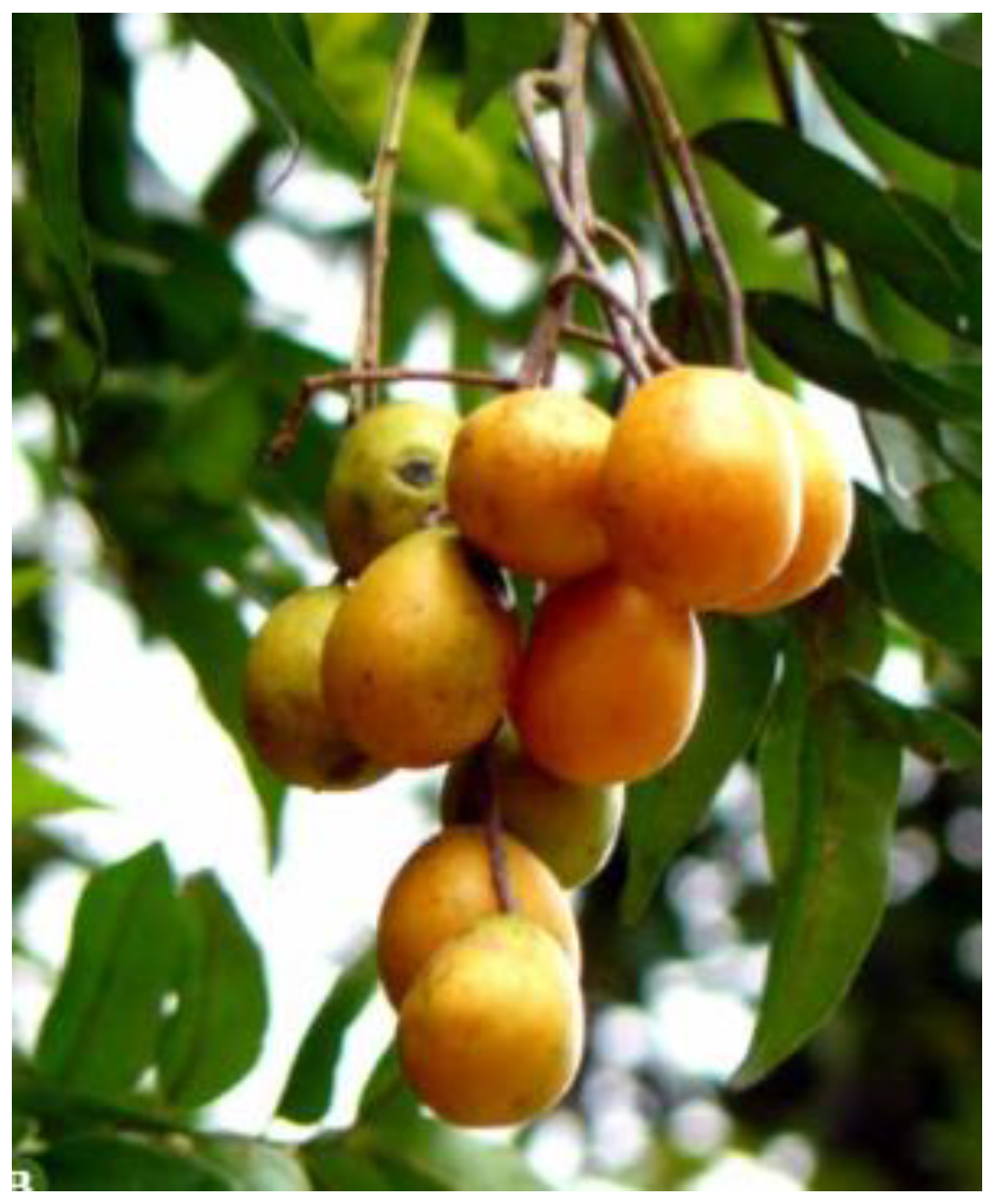 101]. It typically grows along the banks of rivers and lakes in the Amazon basin, particularly during seasonal floods. Camu-camu produces globose fruits measuring approximately 2.5 cm in diameter (
