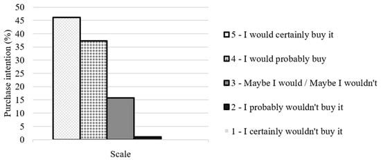 Intention to purchase fermented milk with added banana peel from participants in the sensory analysis.