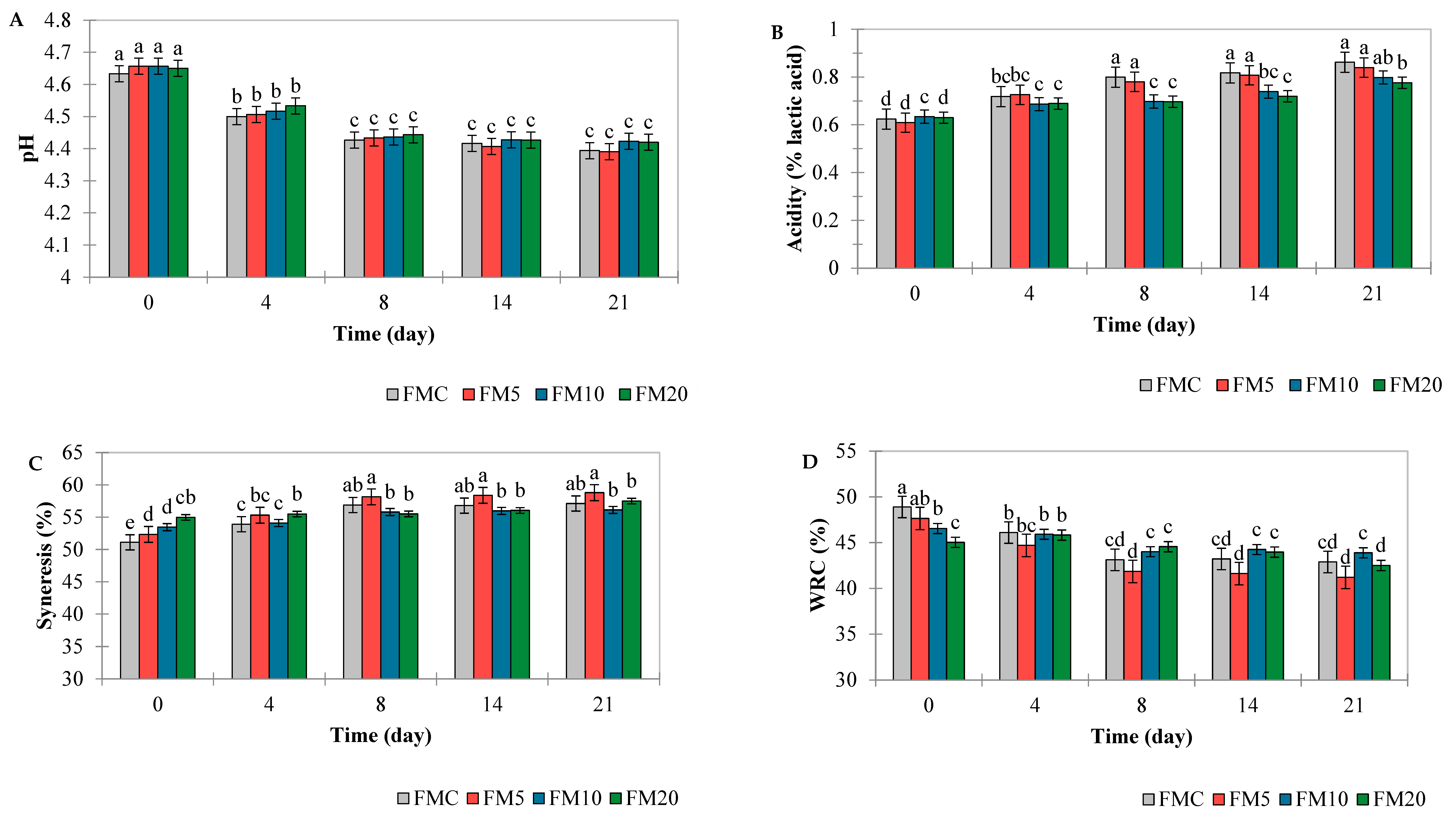 The evaluation of syneresis and water retention capacity (WRC) was conducted according to the method described by Ahmed et al. [
