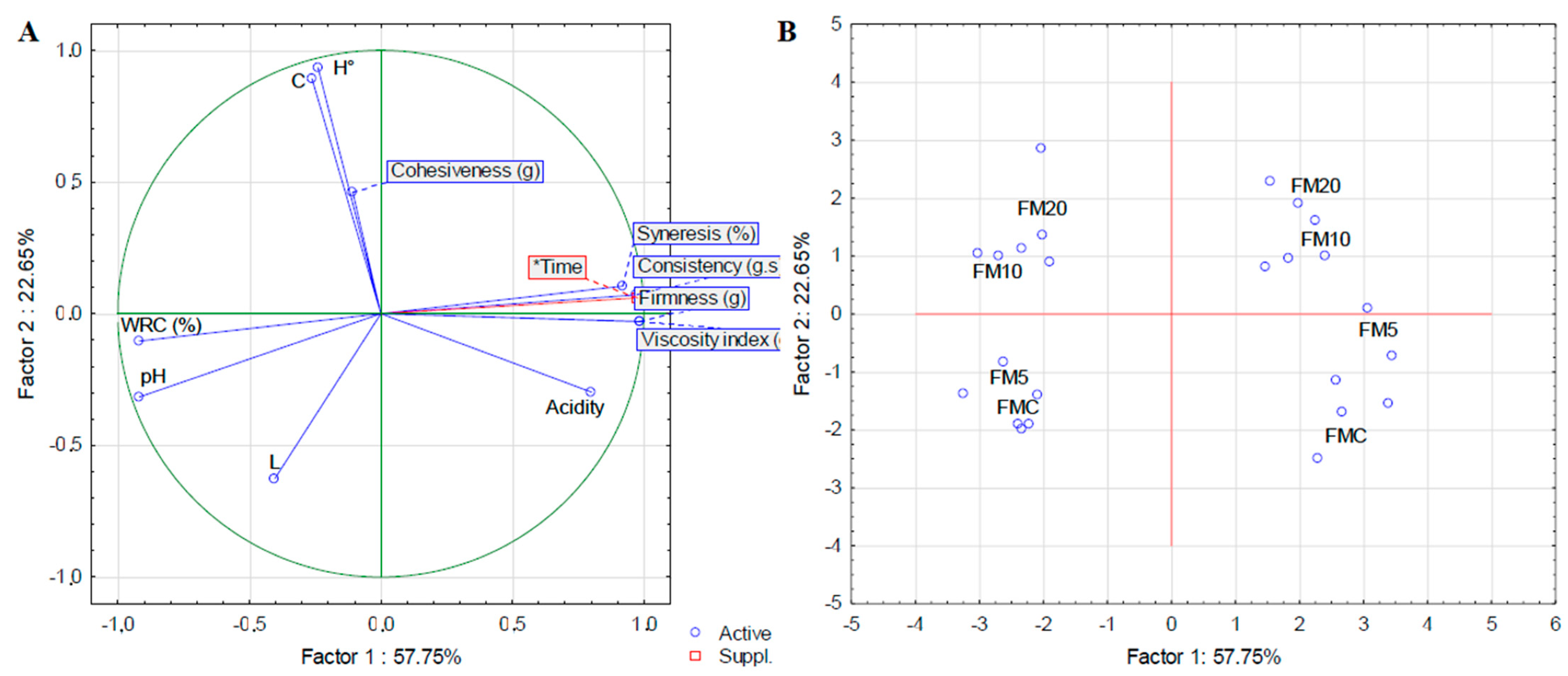 XLSTAT software (2025 version) was used for statistical evaluation. The data was evaluated for normality (Levene test), followed by ANOVA, regression and principal component analysis (PCA) to evaluate the effect of fermentation type, plantain peel concentration and storage time. The PCA was constructed based on Pearson’s coefficient. The mean comparison test used was Tukey (p < 0.05).