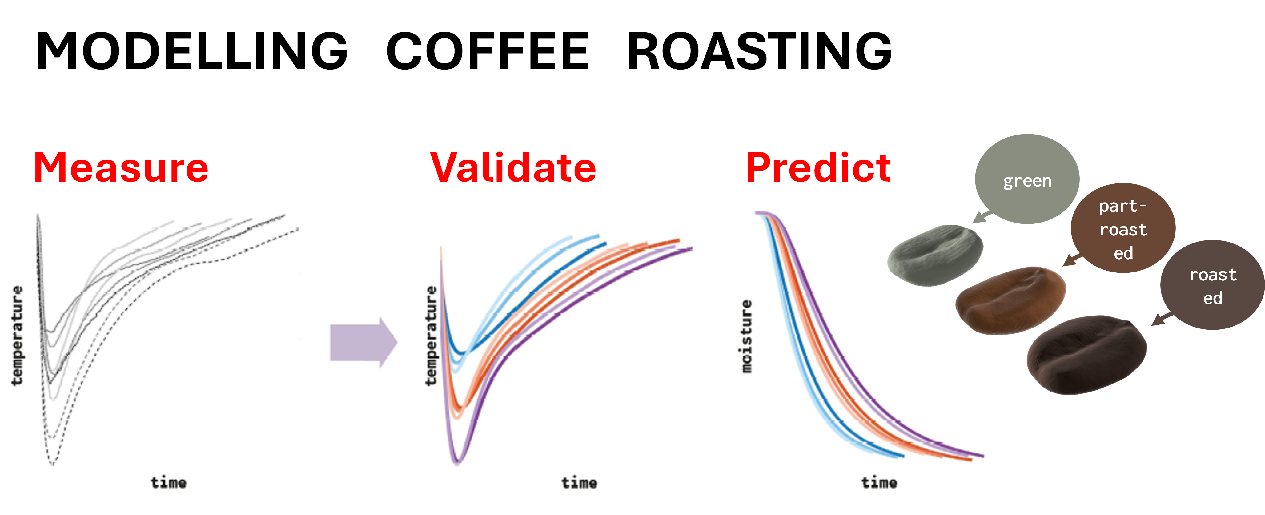 - The thermal model is then calibrated using empirical measurements of both the process and product as they evolve during roasting.