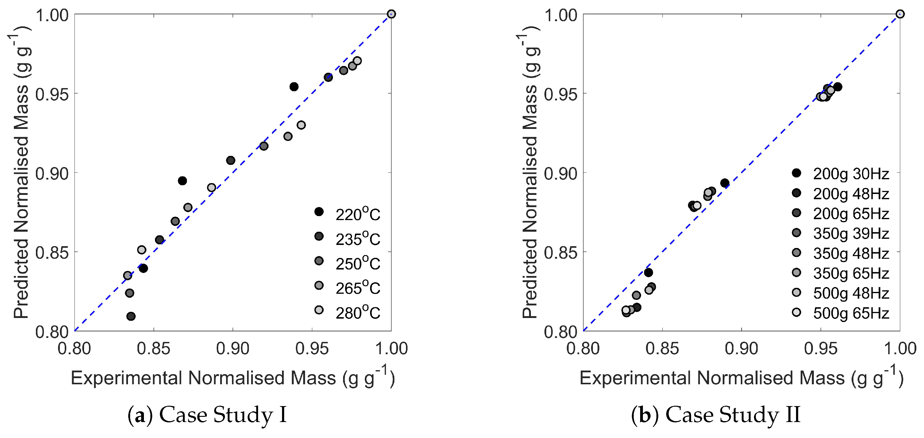 - After developing subroutines to correlate the estimated parameters with the input variables, predicted time–temperature profiles and corresponding physicochemical transformation rates are plotted for each of the case studies.