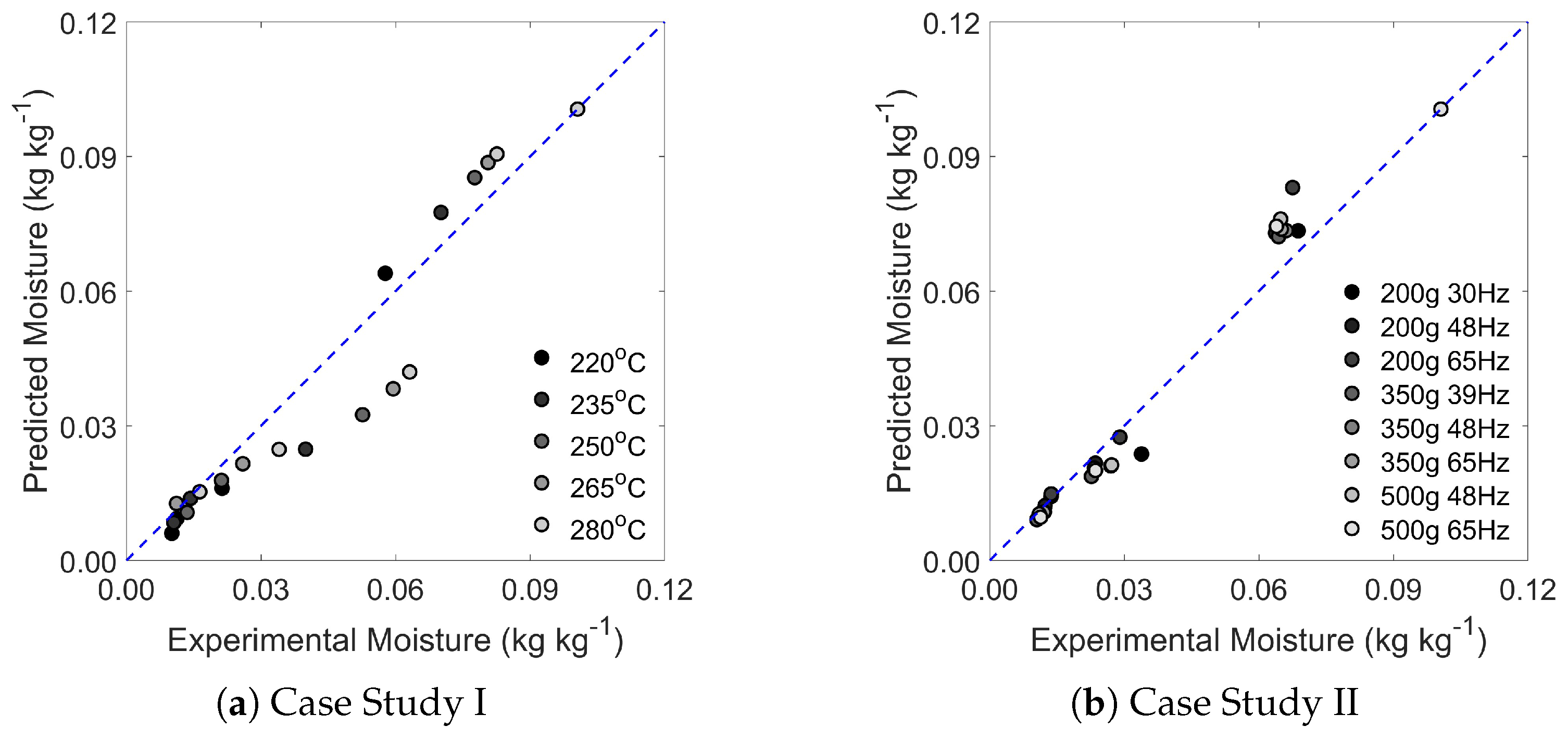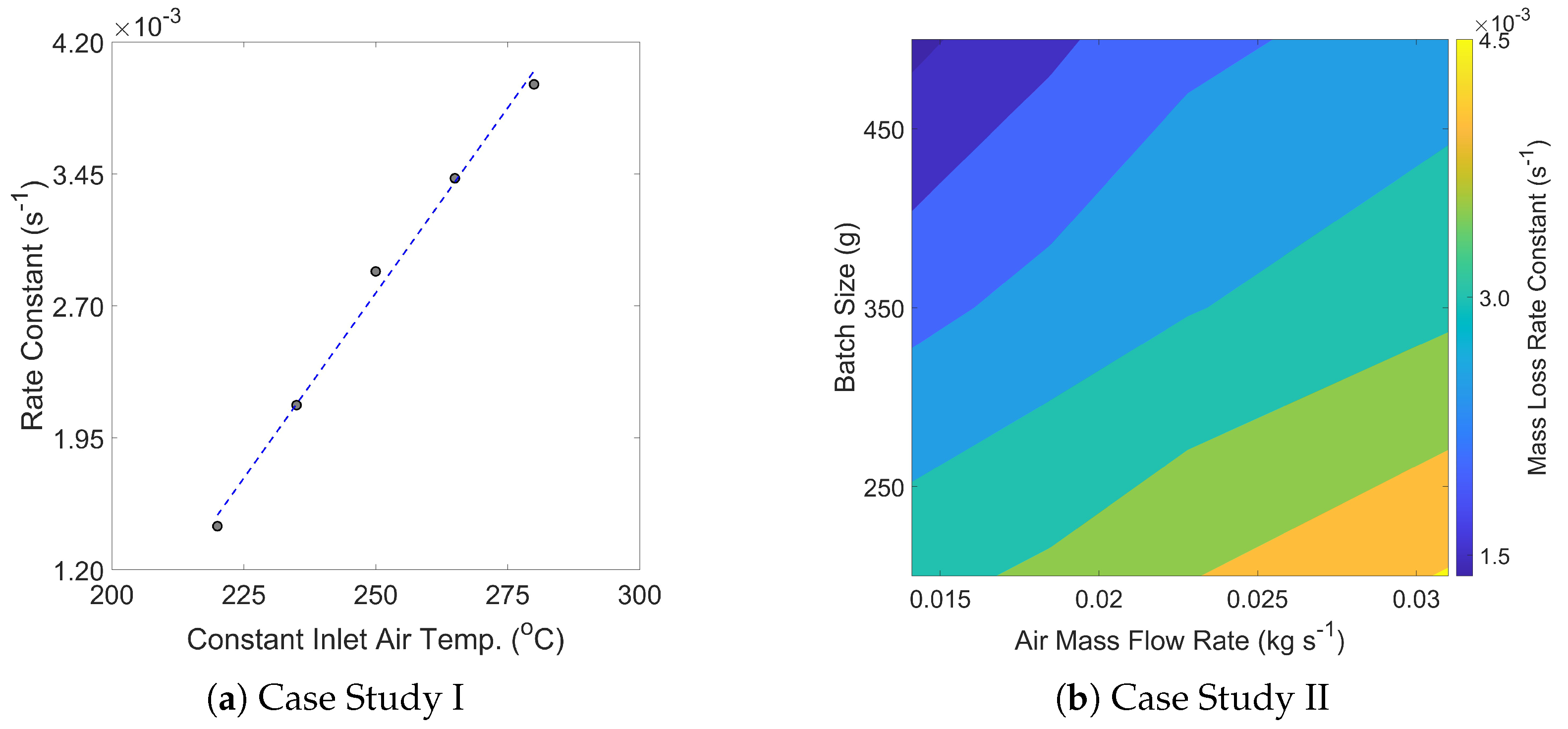 - (i) Case study I—Variation in constant inlet air temperature for a specified batch size and constant airflow.