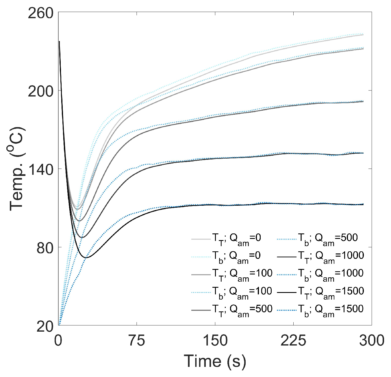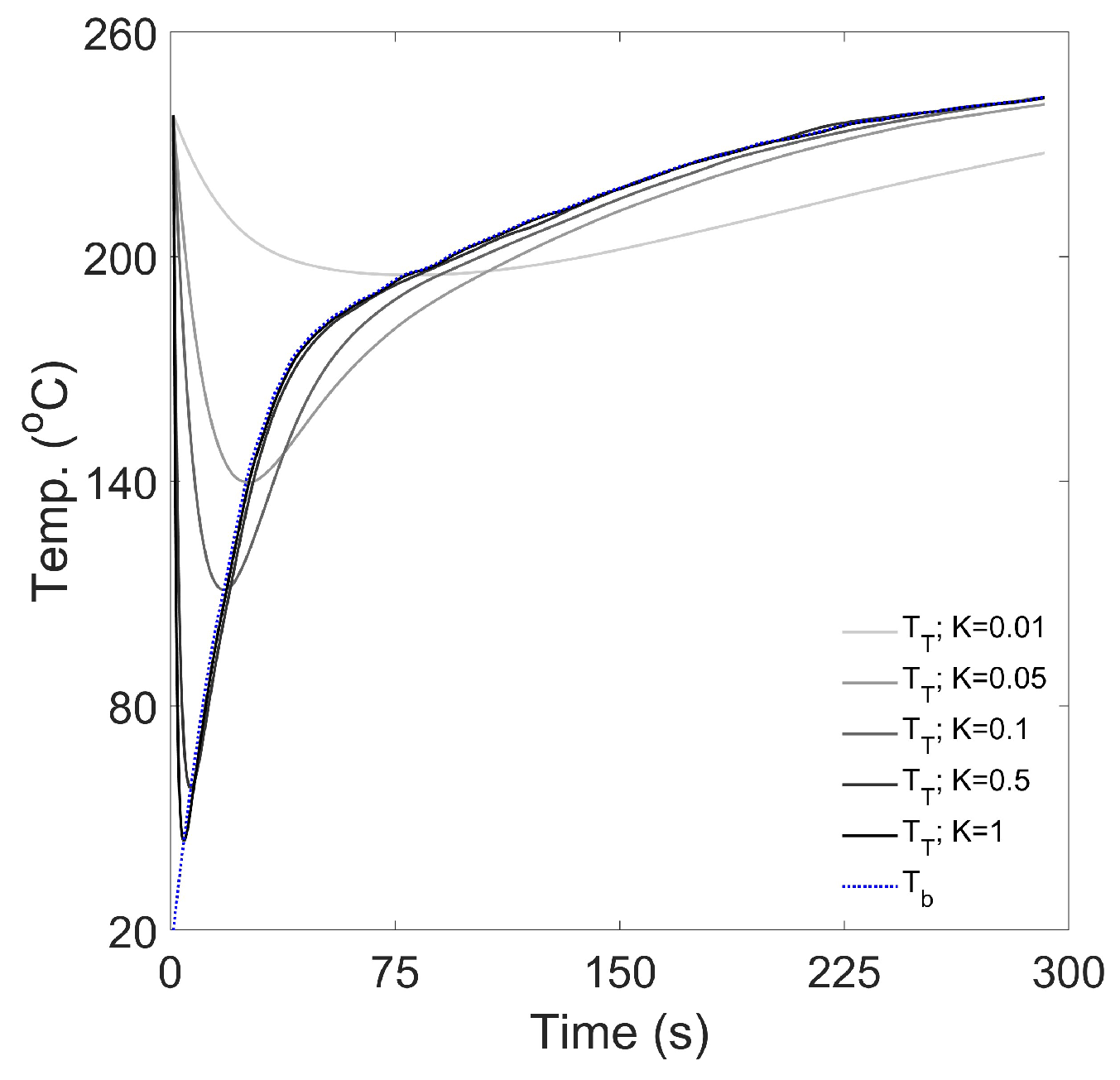 - Brown, S.; Lattimer, B. Transient gas-to-particle heat transfer measurements in a spouted bed. Exp. Therm. Fluid Sci. 2013, 44, 883–892. [Google Scholar] [CrossRef]