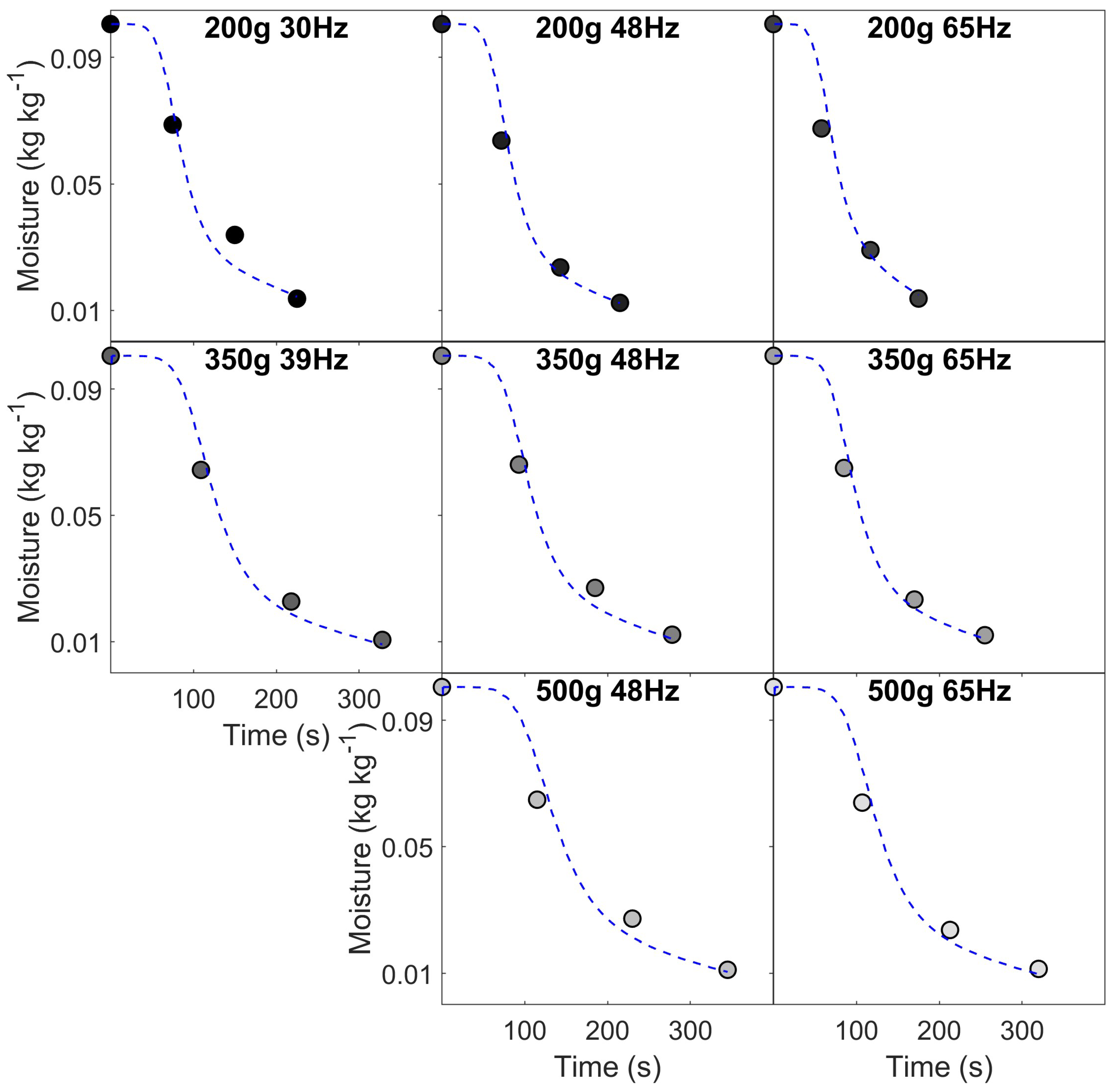 - (ii) Case study II—Variation in batch size and airflow at a specified constant inlet air temperature.