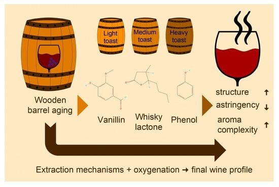 - Garde-Cerdán, T.; Ancín-Azpilicueta, C. Review of Quality Factors on Wine Ageing in Oak Barrels. Trends Food Sci. Technol. 2006, 17, 438–447. [Google Scholar] [CrossRef]