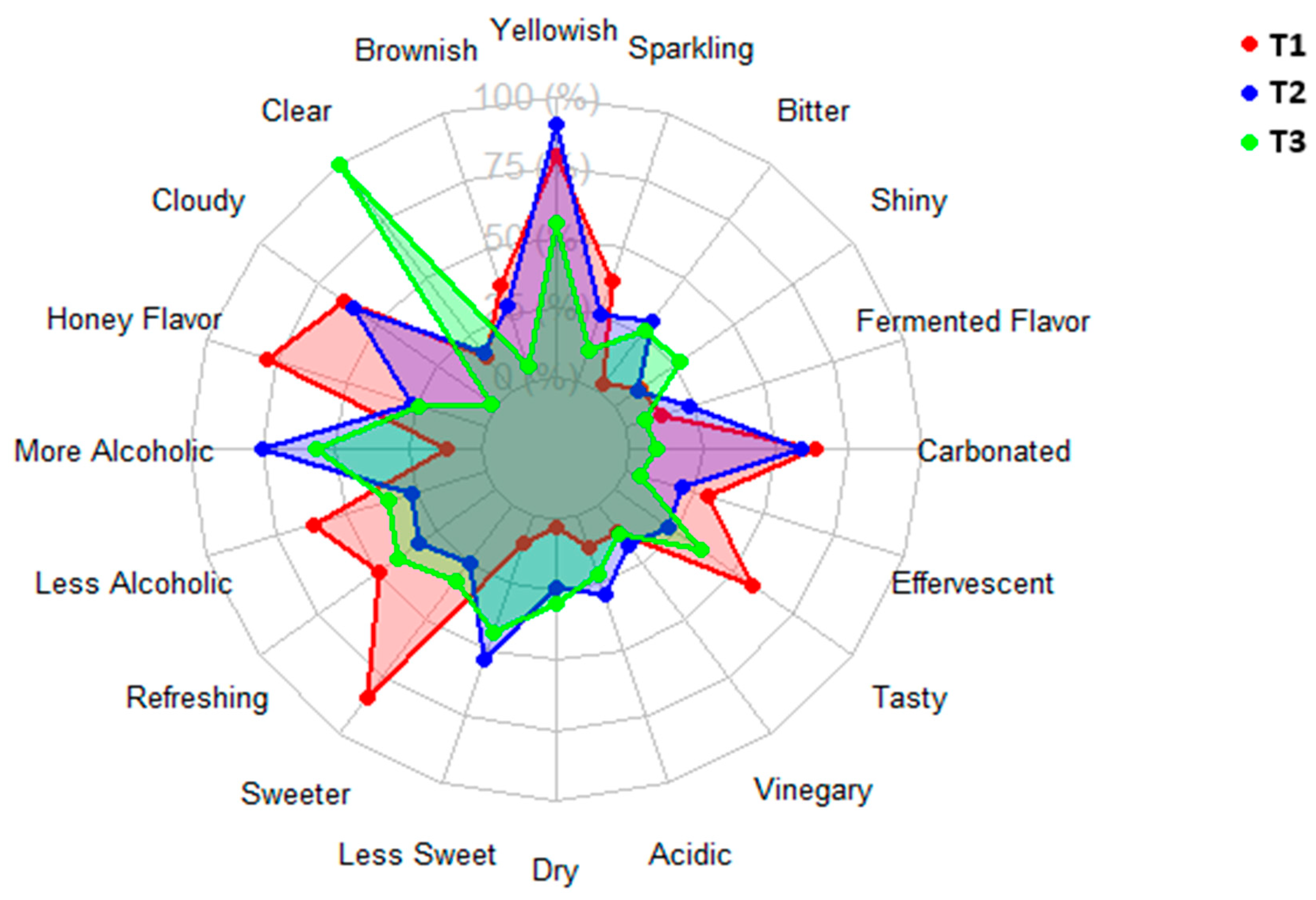- Gorman, M.; Stright, A.; Baxter, L.; Moss, R.; McSweeney, M.B. An Analysis of Consumer Perception, Emotional Responses, and Beliefs about Mead. Int. J. Food Sci. Technol. 2024, 59, 7426–7435. [Google Scholar] [CrossRef]