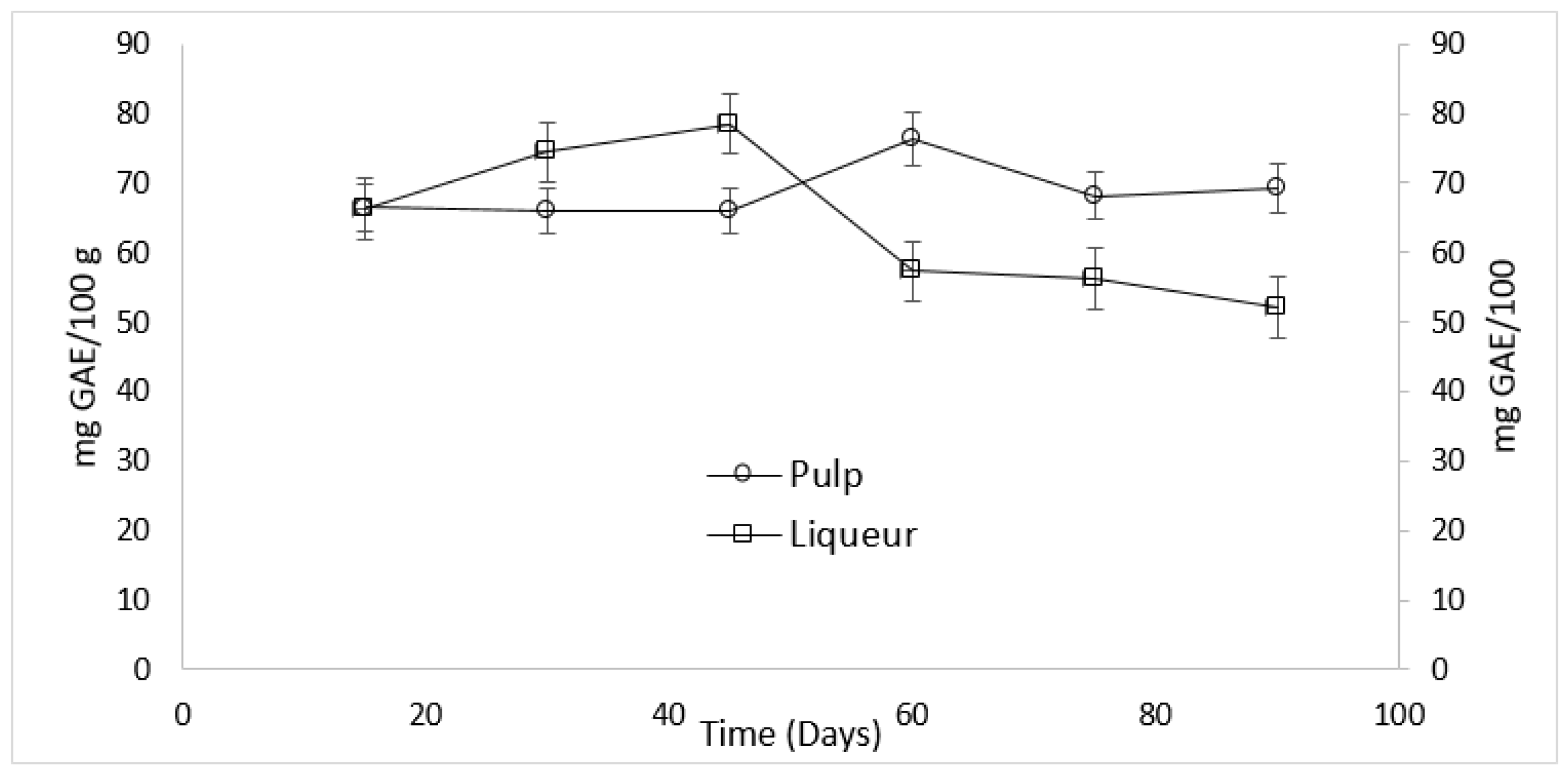 - Pulp and, more markedly, liqueur showed an initial increase in phenolic compounds, followed by a steady decrement.