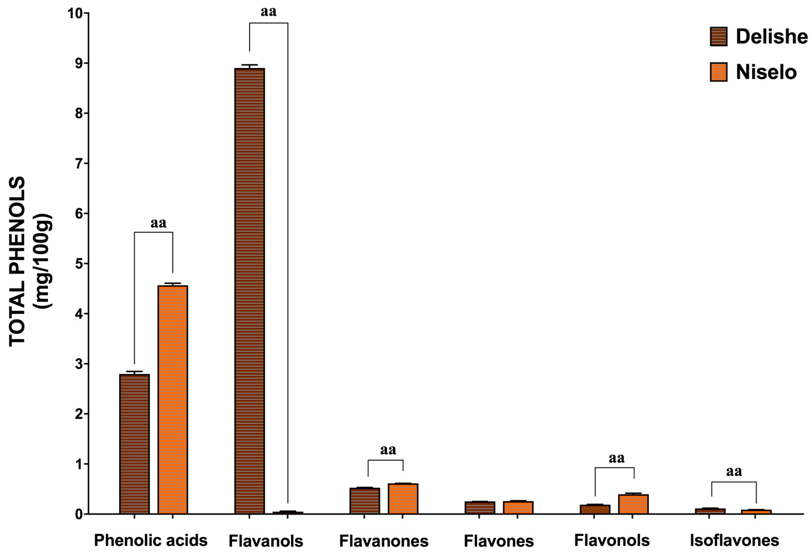 3.1. Analysis of Polyphenol Profiles in Niselo and Delishe Fermented Beverages