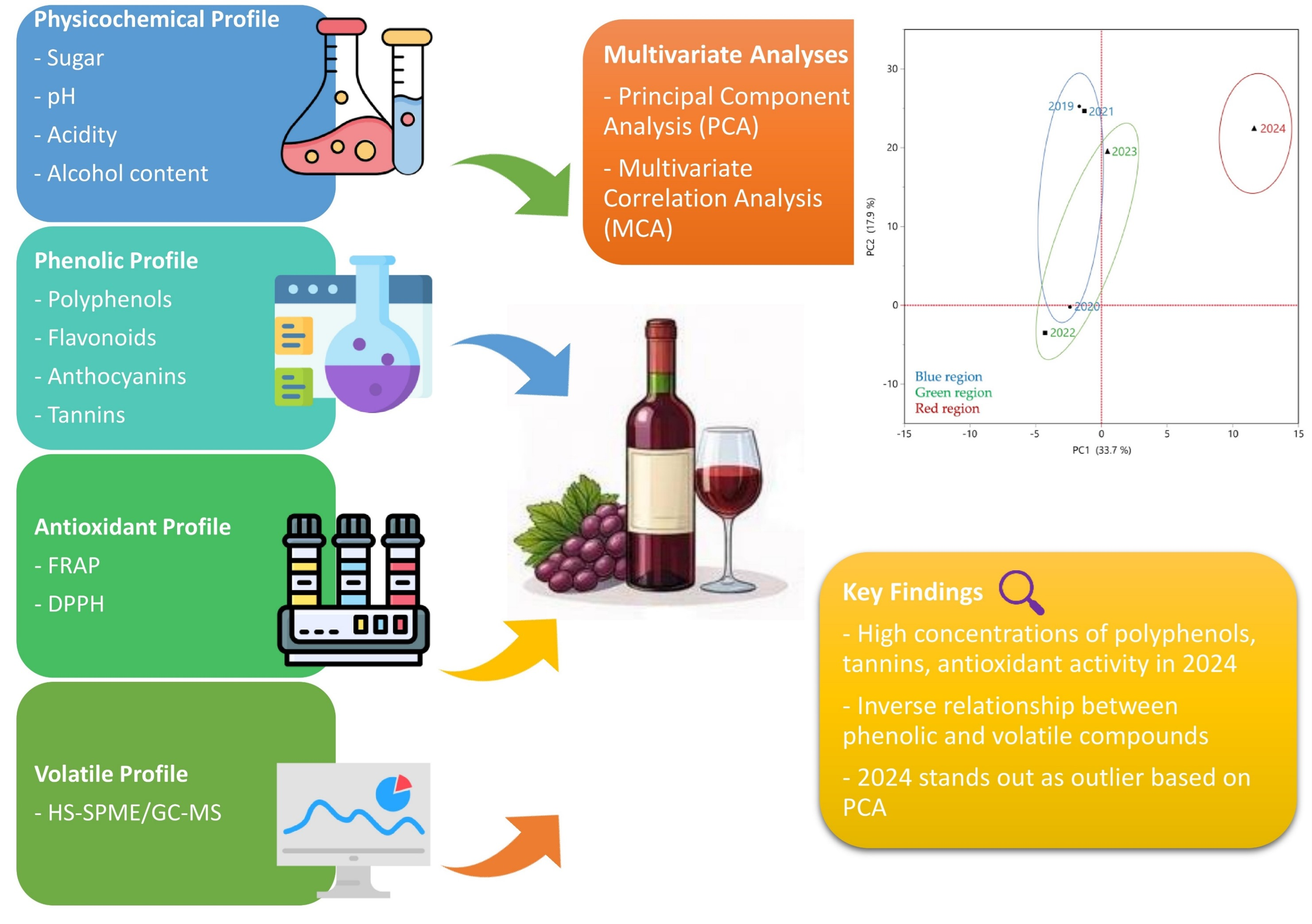 APA StyleToulaki, A., Kalompatsios, D., Mantiniotou, M., Athanasiadis, V., Roufas, K., & Lalas, S. I. (2026). Multivariate Characterization of Maratheftiko Wines (2019–2024): Physicochemical, Phenolic, Antioxidant, Chromatic and Volatile Profiles. Beverages, 12(3), 34. https://doi.org/10.3390/beverages12030034