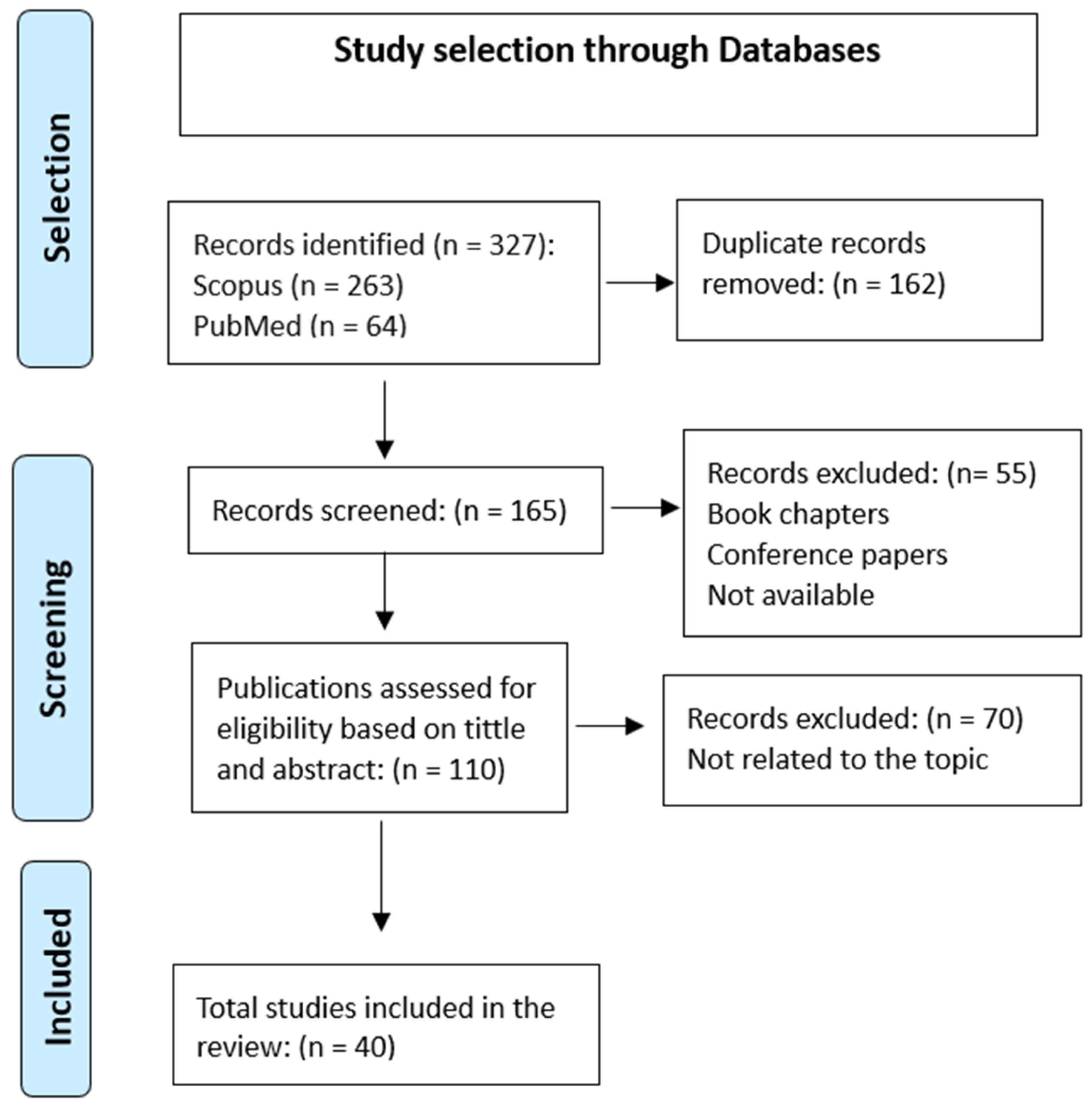 Finally, after screening titles and abstracts, 40 articles were included in the literature review.