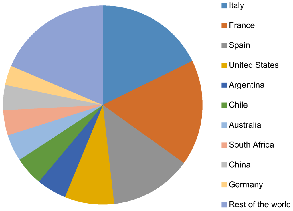 Annual global wine production is about 275 million hL, according to the statistical survey conducted by the International Organization of Vine and Wine (OIV) (Figure 1).