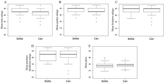 One possible concern here is whether some taint or physico-chemical difference might have been introduced as a function of the packaging materials used. In the past, it is certainly true that tin cans gave a detectable taint to certain food and beverage products (e.g., tinned tomatoes; see Rosenbaum, 1979 [2]; see also Wietstock et al., 2016 [3]). Alternatively, it could be hypothesized that there might be better oxygen-control in the case of bottling vs. canning, or vice versa. Although we thought these possibilities unlikely in the present case, we nevertheless deemed it prudent to conduct a blind tasting control study in which 29 participants were served two glasses of beer blind (one from bottle the other from can) and had to indicate whether they preferred one of the samples or both equal (see Appendix B for the questionnaire used). The blind taste test was conducted at the SciMart event in Edinburgh on 3 April 2016. In this case, the participants were not told anything about the beers that they were tasting. The demographic of the participants and testing procedure was similar to that reported in the main experiment.