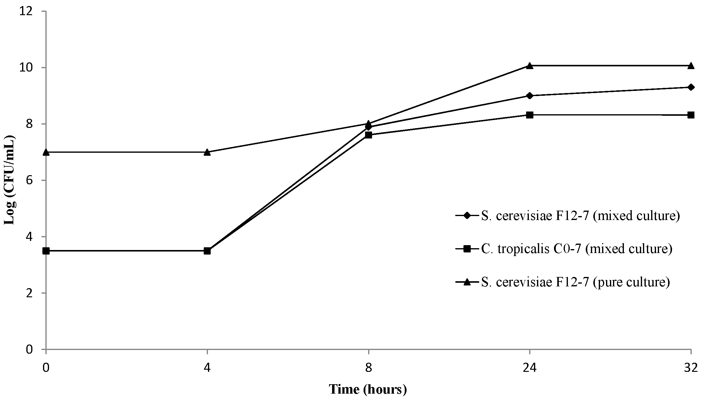 - N’guessan, F.K.; N’Dri, D.Y.; Camara, F.; Djè, M.K. Saccharomyces cerevisiae and Candida tropicalis as starter cultures for the alcoholic fermentation of tchapalo, a traditional sorghum beer. World J. Microbiol. Biotechnol. 2010, 26, 693–699. [Google Scholar] [CrossRef]