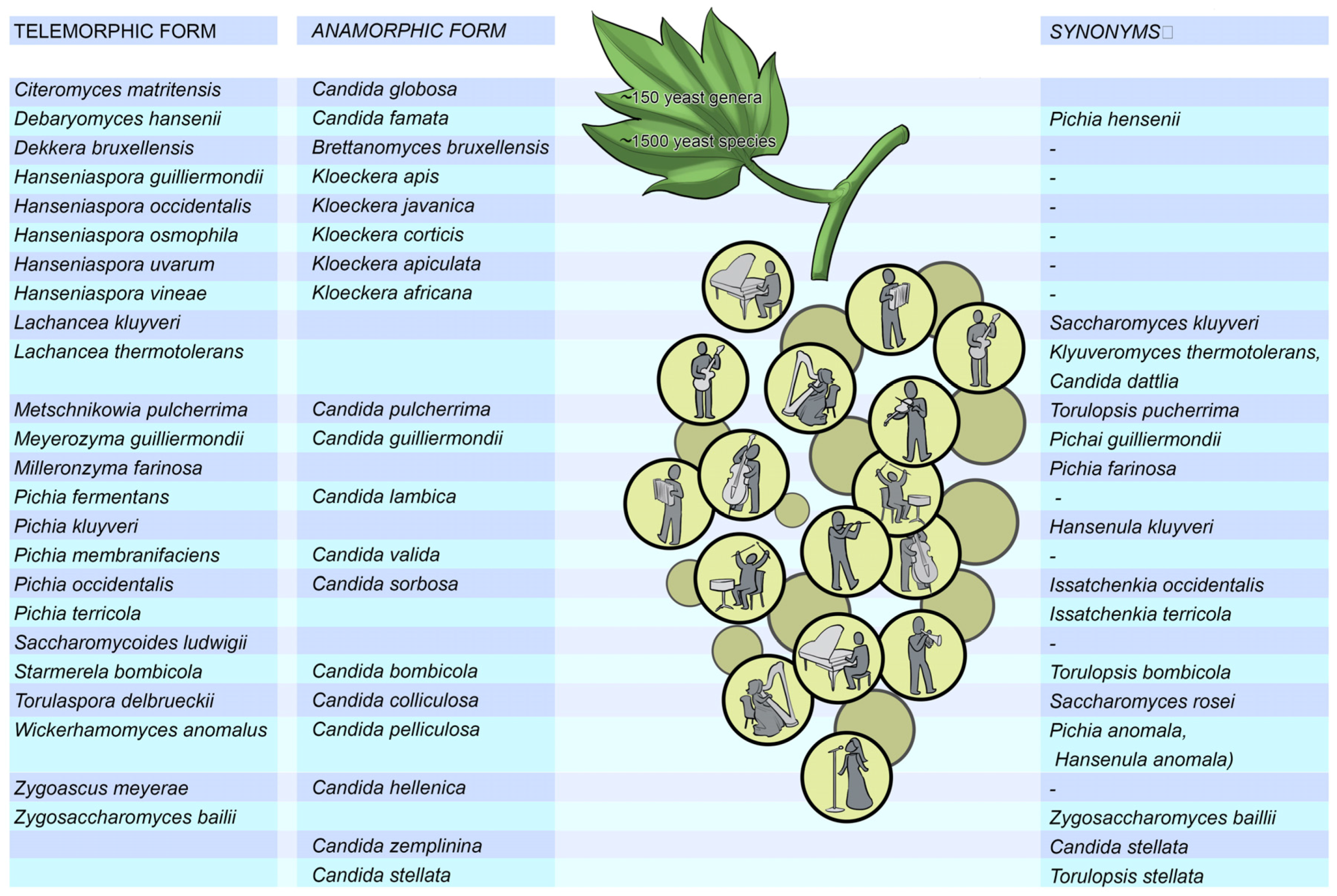 The recruitment of an optimal arrangement of talented musicians playing different instruments in an orchestra is a complex task, which demands a great deal of skill. The fermentation of grape must into wine is an equally complex ecological and biochemical process involving the sequential development of microbial species, as affected by prevailing conditions in vineyards and wineries [