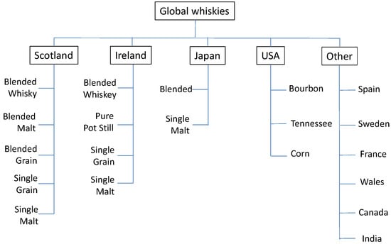 Ireland, USA and Canada are the other main whisk(e)y producing countries alongside Japan, India and several other countries (Figure 1) and each have their own rules regarding production, labeling and marketing that largely match the Scotch Whisky Regulations. “Irish Whiskey” applies to spirits distilled and matured in Ireland, including Northern Ireland, and which complies with Regulation (EC) No 110/2008 of the European Parliament and of the Council and of the Irish Whiskey Act 1980. There are three varieties of Irish Whiskey: Pot Still, Malt and Grain, each with its own specific technical specifications. Traditionally Irish whiskies are triple distilled, which results in a higher strength final spirit that is light in aroma but sweet in taste due to the ratio of total higher alcohols to esters. In Ireland, however, law does not prescribe triple distillation and double distillation may be employed.
