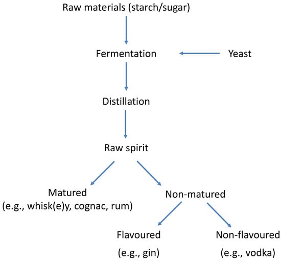Figure 2 shows the general scheme for the production of various distilled spirits, highlighting the important role of yeast at the fermentations stage.