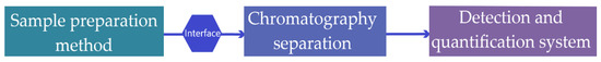 Sample preparation is a determinant stage for the analysis success. This is mainly due to the fact that target analytes are usually present at low concentrations in complex matrices, which turns unable to analyze them directly in the analytical instrument, making necessary, and in many cases mandatory, a sample preparation step. Current trends in sample preparation and analysis are towards the development of a fully automated and more universal system involving extraction, chromatographic separation, detection and quantification (Figure 6), which allows the analysis to be done in a single stage [87]. This useful coupling while reducing the sample handling and analysis time will improve the detection and selectivity and allows the analyses of a large number of samples.