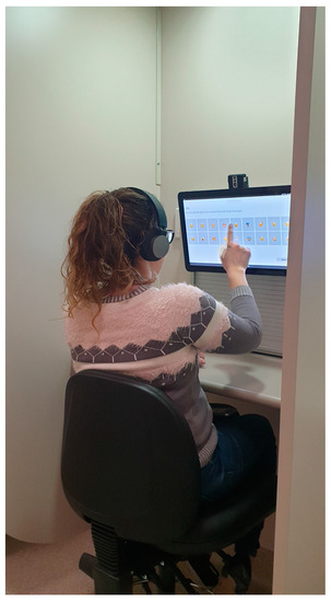 Participant in the booth during the sensory session using the integrated camera system and Bio-Sensory App.