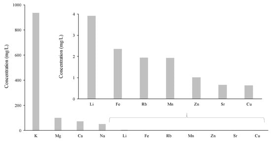 The metallic elemental composition in wines has been widely studied during the last few decades, with potassium (K), calcium (Ca), iron (Fe), zinc (Zn), cadmium (Cd), magnesium (Mg), lead (Pb), mercury (Hg), and tin (Sn) being the most common metals present in wines [151]. Aluminum (Al), nickel (Ni), and manganese (Mn) demonstrated to play a role in the taste of wine [152], whereas copper (Cu), Fe, and Zn, which are essential metals, have been reported to enrich the nutrition quality of wine. In this sense, moderate wine consumption contributes to the intake of these and other essential metals (e.g., Ca, K, Mg) [152,153]. On the other hand, heavy metals (e.g., Cd, arsenic (As)), which can also be part of wines’ composition, may affect human health owing to toxicity reasons [154,155]. Hg, Pb, and Cd are indeed considered toxic, however, when consumed in excess, Cu, Ni, Zn, and Al may also be associated with a certain possibility of toxicity [156]. Thus, characterization and rigorous analytical control of metals concentration in wines is crucial to promote the wines’ quality and to maintain adequate levels of harmful heavy metals [151]. In this sense, the International Organization of Vine and Wine (OIV) has established the maximum acceptable limits for distinct metals present in wines, namely, As (0.20 mg/L), Cd (0.01 mg/L), Cu (1.00 mg/L), Pb (0.15 mg/L), and Zn (5.00 mg/L). Nevertheless, few reports have been conducted related to metals’ content in Madeira wines. Trujillo et al. [157] was the only study aimed to determine the metals’ content in Madeira wine, and the results are shown in Figure 8.