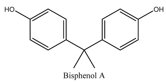 Bisphenols consist of two linked hydroxyphenyl groups with hydroxyl functionalities. Bisphenol A (BPA) is the most important compound under this category by many advantageous properties, particularly the antioxidant characteristic (Figure 4). BPA could act as a catalyzer of polymerization reactions, particularly polycarbonates and epoxy resins. In addition, it is extensively employed in the production of phenol resins, polyacrylates, and polyesters. BPA and bisphenol F (BPF) are not only used as precursors of epoxy resins, but also as PVC additives in organosol resins, as they are used to get rid of the spare hydrochloric acid produced in reactions involving PVC [69].
