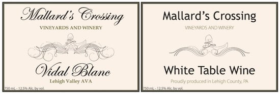 Todd, M.J.; Kelley, K.M.; Hopfer, H. USA Mid-Atlantic Consumer Preferences for Front Label Attributes for Local Wine. Beverages 2021, 7, 22. https://doi.org/10.3390/beverages7020022