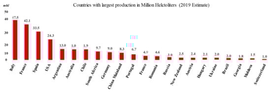Countries with the highest production for the year *2019 (*estimate). Source: The International Organization of Vine and Wine [].