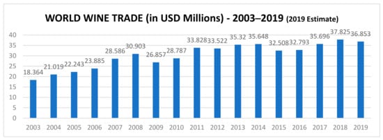 World wine trade 2003–*2019 (*Estimate). Source: The International Organization of Vine and Wine [].