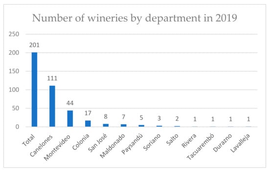 Number of wineries and dispersion by department. Source: INAVI [,].
