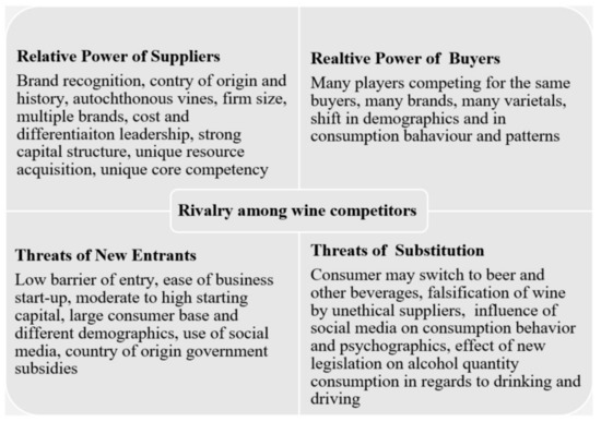 Sample Porter’s five forces model applied to the wine trade. Source: Authors’ synthesis from literature review [].