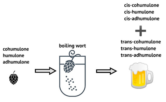 - Schmidt, C.; Biendl, M.; Lagemann, A.; Stettner, G.; Vogt, C.; Dunkel, A.; Hofmann, T. Influence of different hop products on the cis/trans ratio of iso-a-acids in beer and changes in key aroma and bitter taste molecules during beer ageing. J. Am. Soc. Brew. Chem, 2014, 72, 116–125. [Google Scholar] [CrossRef]