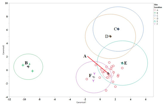The usage of chemometrics to separate out the different distilleries builds upon a previous study by Zhang et al., who identified sauce-flavored Chinese baijiu by organic acids, trace elements, and stable carbon isotope ratios [16]. For the discriminate analysis plot all data were processed the same, using JMP 14. Data were normalized by using z-scores. The data included all fluorescence emission data and price data ($/L). Figure 7 is the linear discriminant analysis (LDA) plot of the data. The LDA plot shows good separation between the distilleries.