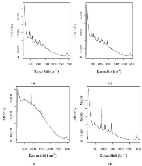 - Ramírez-Elías, M.G.; Guevara, E.; Zamora-Pedraza, C.; Rogelio Aguirre, J.R.; Juárez, B.I.F.; Bárcenas-Pezos, G.M.; Ruiz, F.; González, F.J. Assessment of mezcal aging combining Raman spectroscopy and multivariate analysis. Biomed. Spectrosc. Imaging 2017, 6, 75–81. [Google Scholar] [CrossRef]