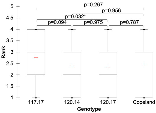 | Malt Quality Trait | Uniform | Modifed | 117.17 | 120.14 | 120.17 | Copeland | 1 | 2 | 3 | n = 24 | ||